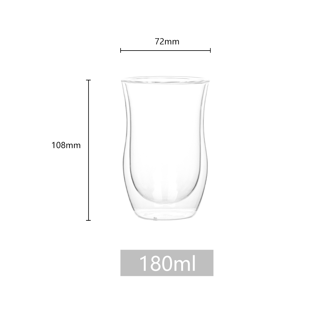 High borosilicate glass is non-toxic, BPA-free, and resistant to chemical corrosion. The double-wall design provides excellent insulation, keeping hot beverages hot and cold beverages cold for longer.Φ72x H108mm,180ml