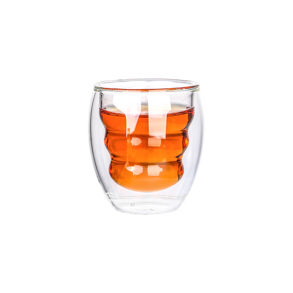 High borosilicate glass is non-toxic, BPA-free, and resistant to chemical corrosion. The double-wall design provides excellent insulation, keeping hot beverages hot and cold beverages cold for longer.Φ90x H90mm,250ml