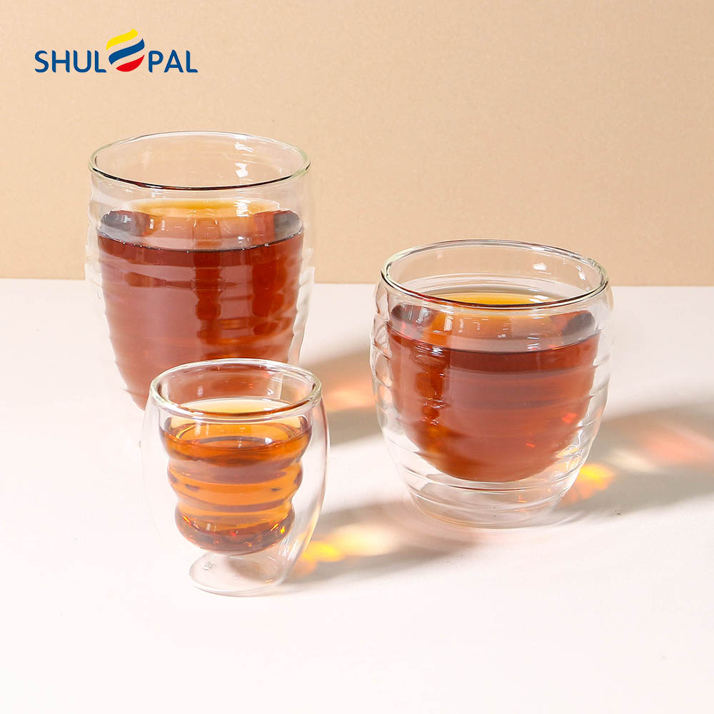 High borosilicate glass is non-toxic, BPA-free, and resistant to chemical corrosion. The double-wall design provides excellent insulation, keeping hot beverages hot and cold beverages cold for longer.Φ82x H115mm,350ml