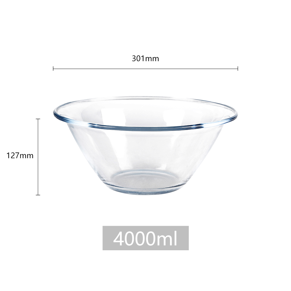 From mixing and whisking to serving and storing, SHULOPAL's borosilicate glass bowls are a versatile addition to any kitchen, microwave safe, dishwasher safe, oven safe, from refrigerator to oven no risk of breakage. Φ:301,H:127mm, 4000ml
