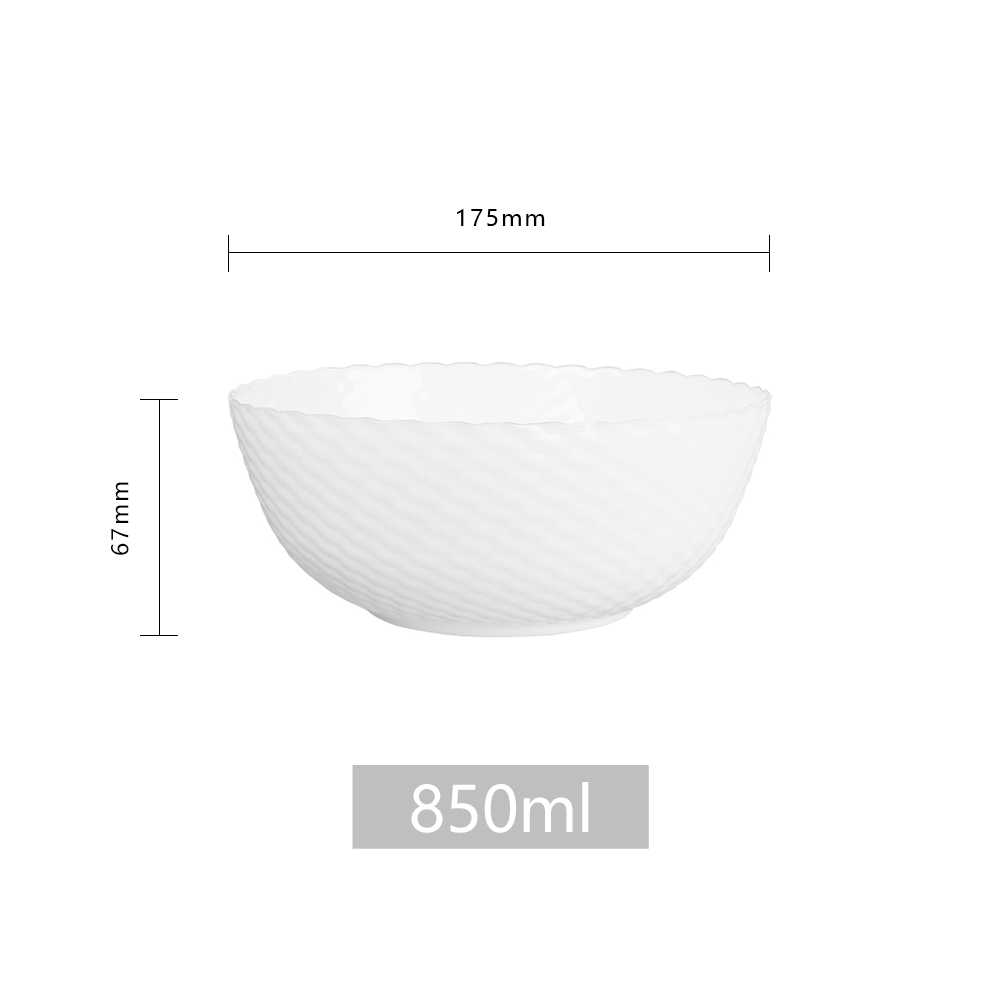Inch:7.00 Diameter:175mm Width:175mm Depth:175mm Height:67mm Volume:850ml Material:Opal Use:All Purpose Bowl Microwave Safe:Yes Dishwasher:Yes