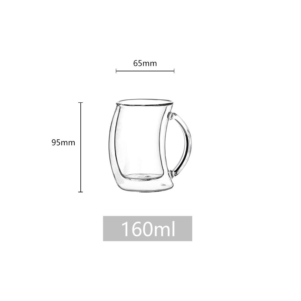 High borosilicate glass is non-toxic, BPA-free, and resistant to chemical corrosion. The double-wall design provides excellent insulation, keeping hot beverages hot and cold beverages cold for longer.Φ65x H95mm,150ml