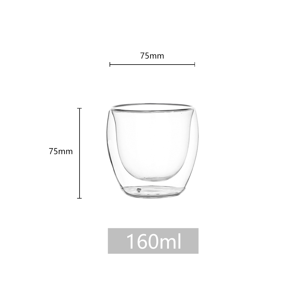 High borosilicate glass is non-toxic, BPA-free, and resistant to chemical corrosion. The double-wall design provides excellent insulation, keeping hot beverages hot and cold beverages cold for longer.Φ75x H75mm,160ml