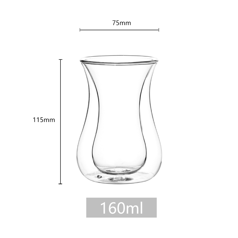 High borosilicate glass is non-toxic, BPA-free, and resistant to chemical corrosion. The double-wall design provides excellent insulation, keeping hot beverages hot and cold beverages cold for longer.Φ75x H115mm,160ml