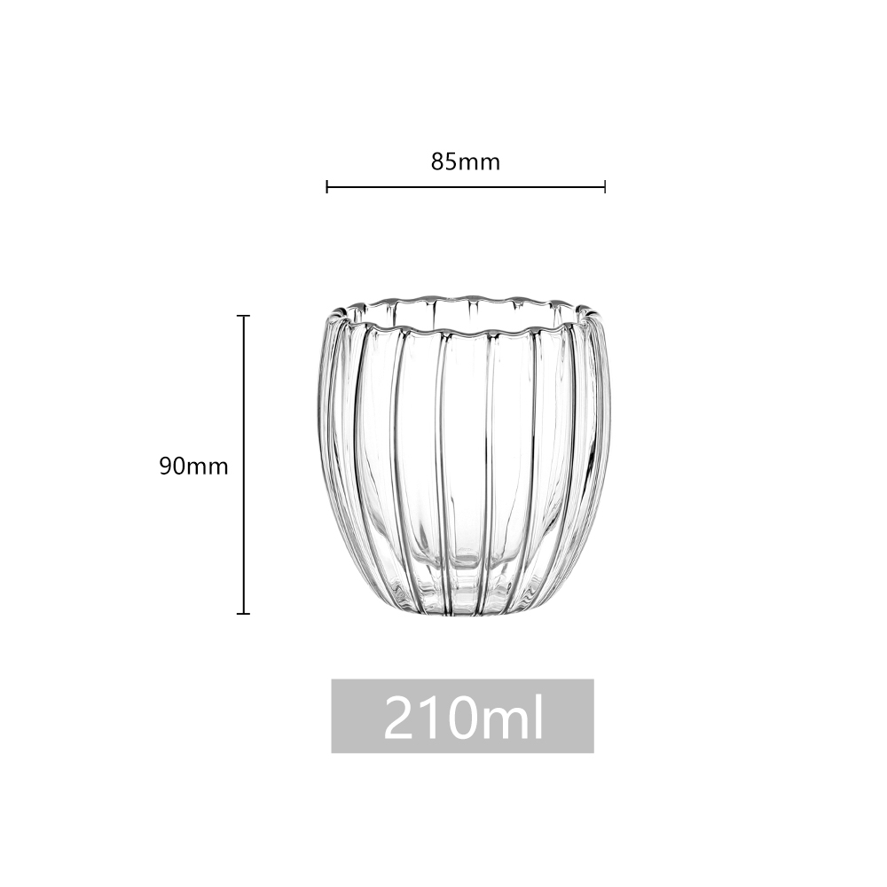 High borosilicate glass is non-toxic, BPA-free, and resistant to chemical corrosion. The double-wall design provides excellent insulation, keeping hot beverages hot and cold beverages cold for longer.Φ85x H90mm,210ml