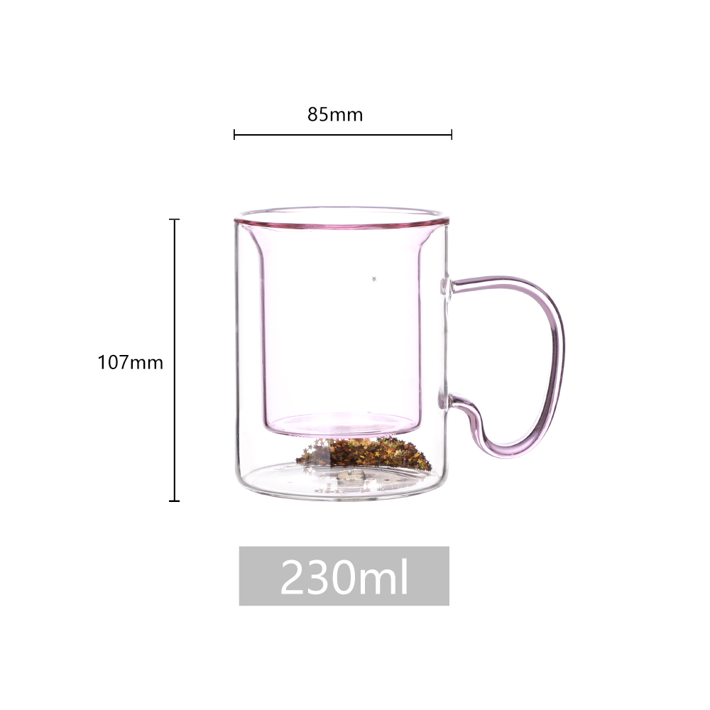 High borosilicate glass is non-toxic, BPA-free, and resistant to chemical corrosion. The double-wall design provides excellent insulation, keeping hot beverages hot and cold beverages cold for longer.Φ85x H107mm,230ml