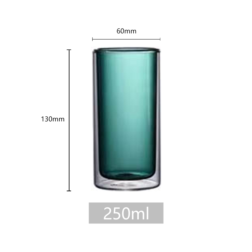 High borosilicate glass is non-toxic, BPA-free, and resistant to chemical corrosion. The double-wall design provides excellent insulation, keeping hot beverages hot and cold beverages cold for longer.Φ60x H130mm,250ml