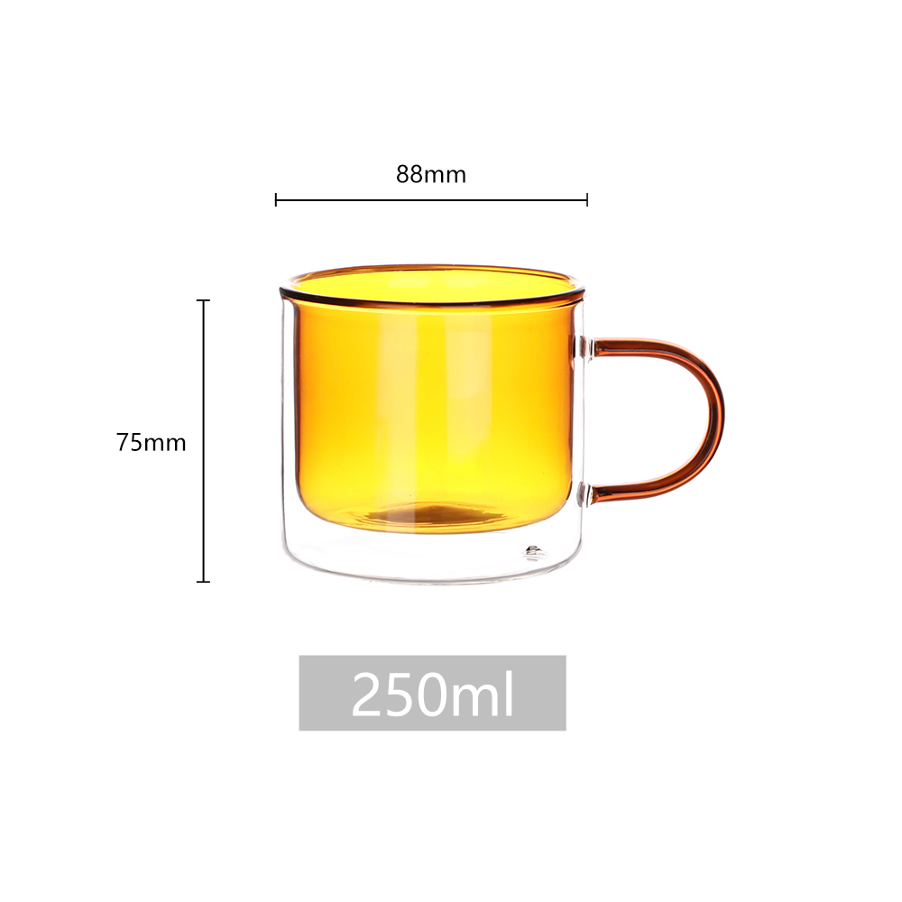 High borosilicate glass is non-toxic, BPA-free, and resistant to chemical corrosion. The double-wall design provides excellent insulation, keeping hot beverages hot and cold beverages cold for longer.Φ88x H75mm,250ml