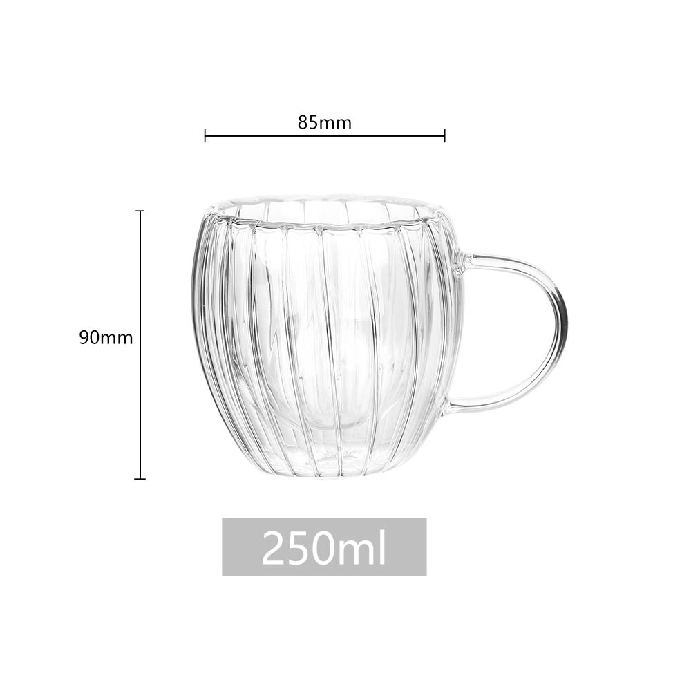 High borosilicate glass is non-toxic, BPA-free, and resistant to chemical corrosion. The double-wall design provides excellent insulation, keeping hot beverages hot and cold beverages cold for longer.Φ85x H90mm,250ml