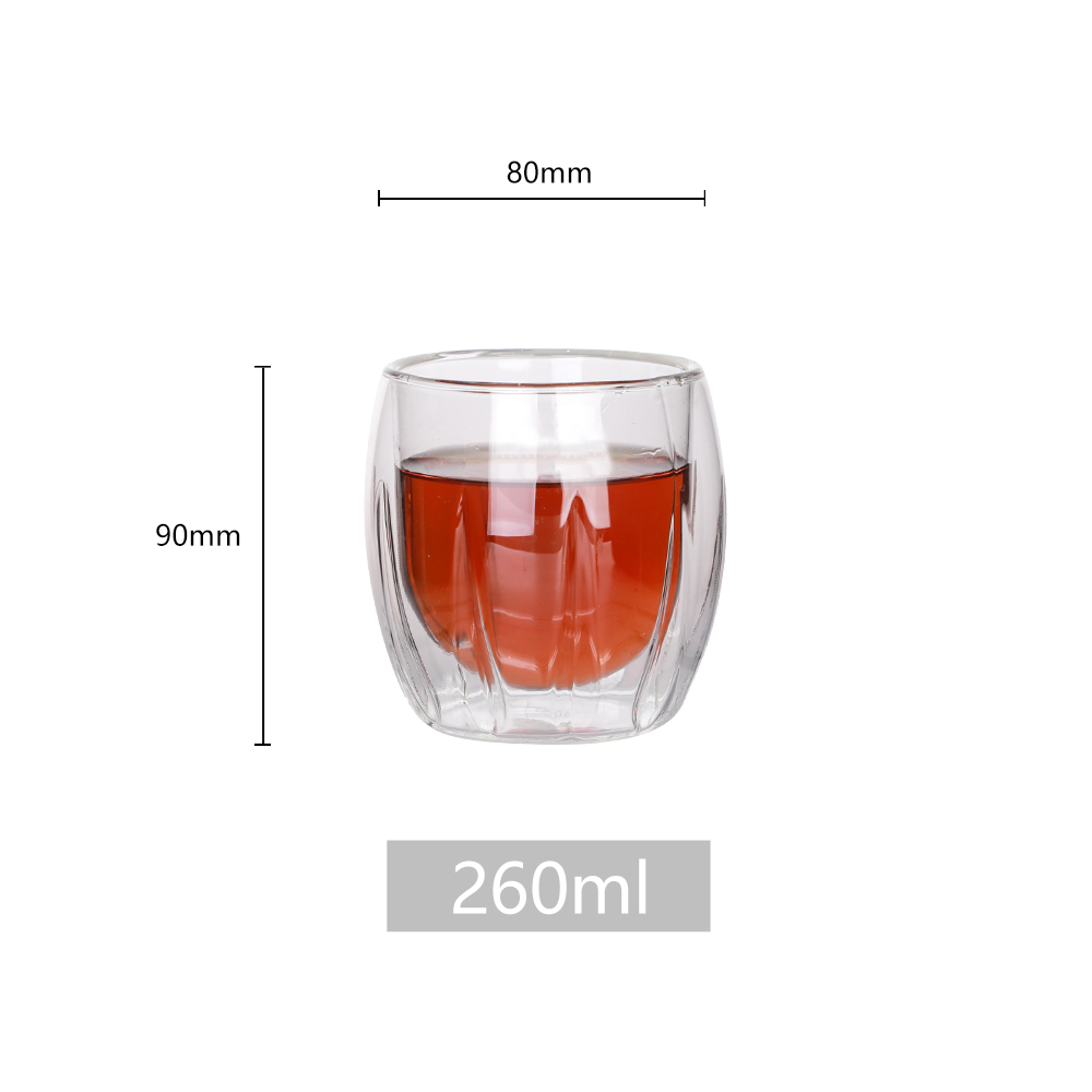 High borosilicate glass is non-toxic, BPA-free, and resistant to chemical corrosion. The double-wall design provides excellent insulation, keeping hot beverages hot and cold beverages cold for longer.Φ80x H90mm,250ml
