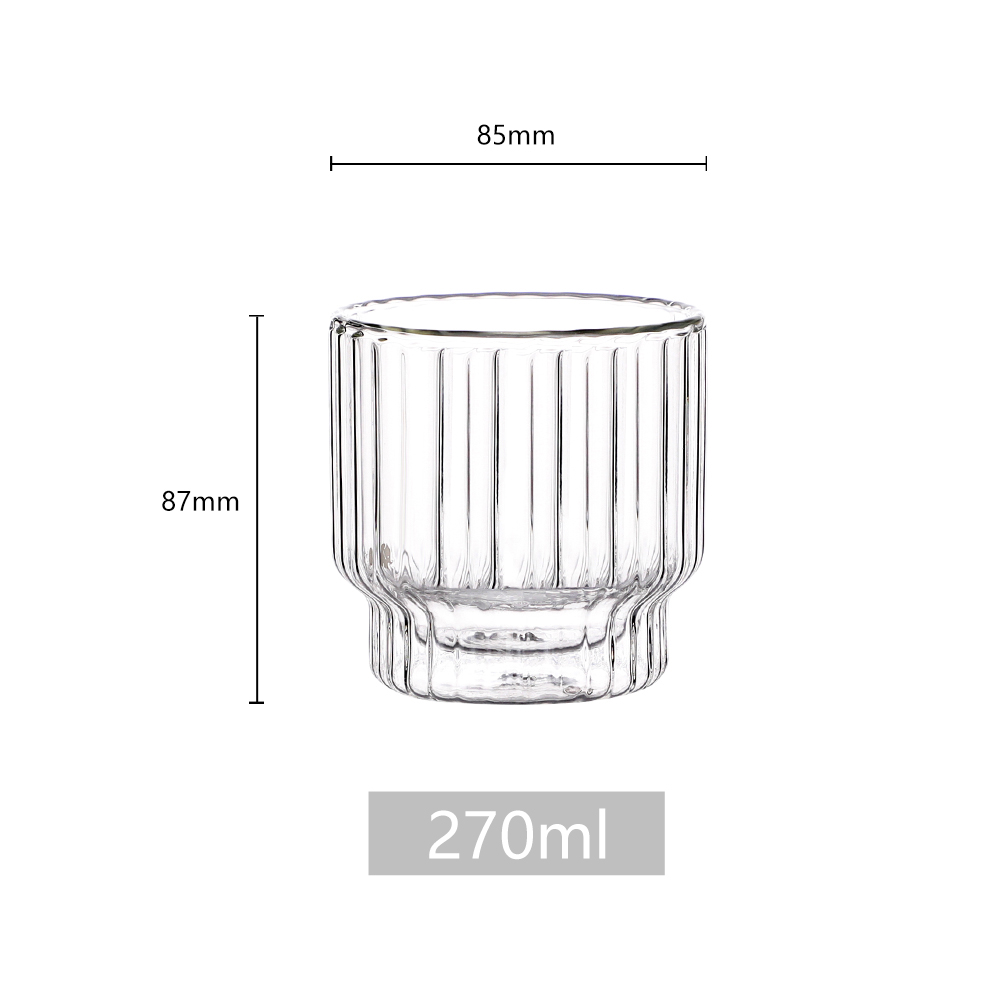 High borosilicate glass is non-toxic, BPA-free, and resistant to chemical corrosion. The double-wall design provides excellent insulation, keeping hot beverages hot and cold beverages cold for longer.Φ85x H87mm,260ml