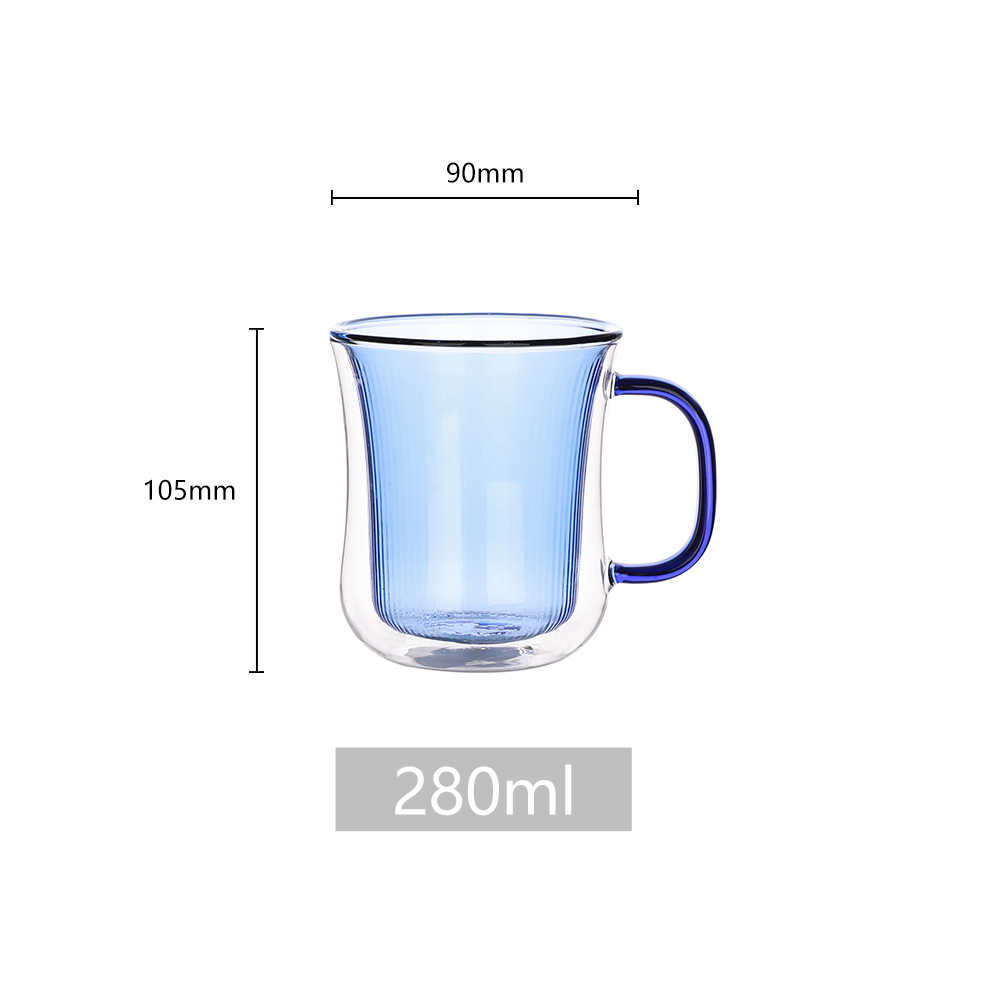 High borosilicate glass is non-toxic, BPA-free, and resistant to chemical corrosion. The double-wall design provides excellent insulation, keeping hot beverages hot and cold beverages cold for longer.Φ90x H105mm,280ml