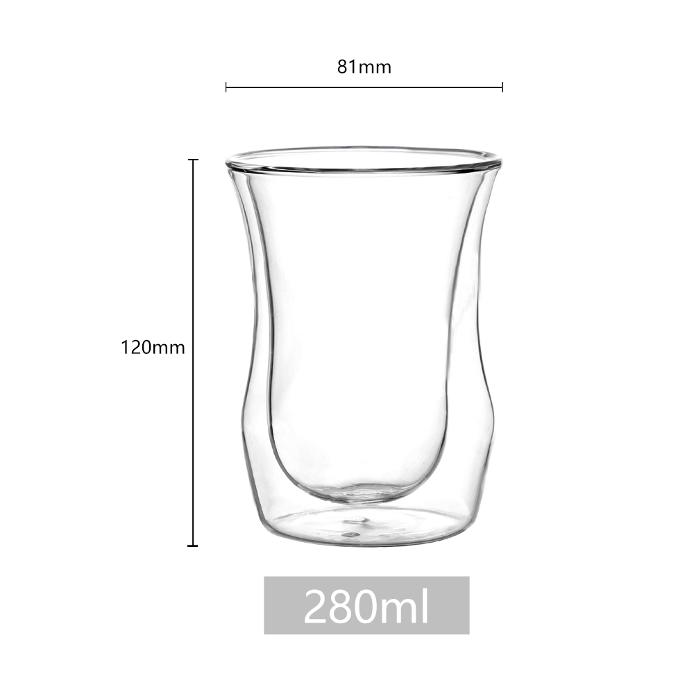 High borosilicate glass is non-toxic, BPA-free, and resistant to chemical corrosion. The double-wall design provides excellent insulation, keeping hot beverages hot and cold beverages cold for longer.Φ81x H120mm,280ml
