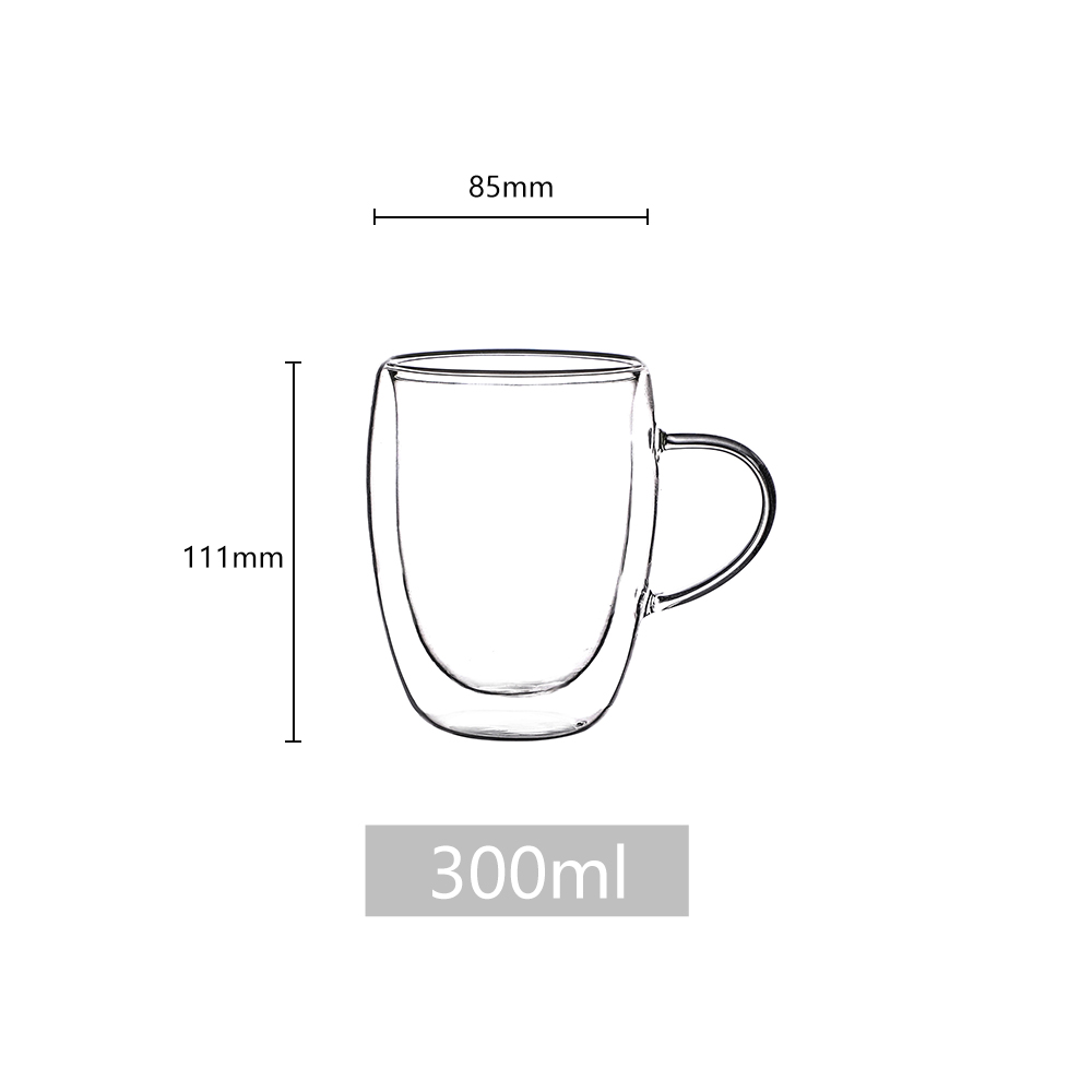 High borosilicate glass is non-toxic, BPA-free, and resistant to chemical corrosion. The double-wall design provides excellent insulation, keeping hot beverages hot and cold beverages cold for longer.Φ85x H111mm,300ml