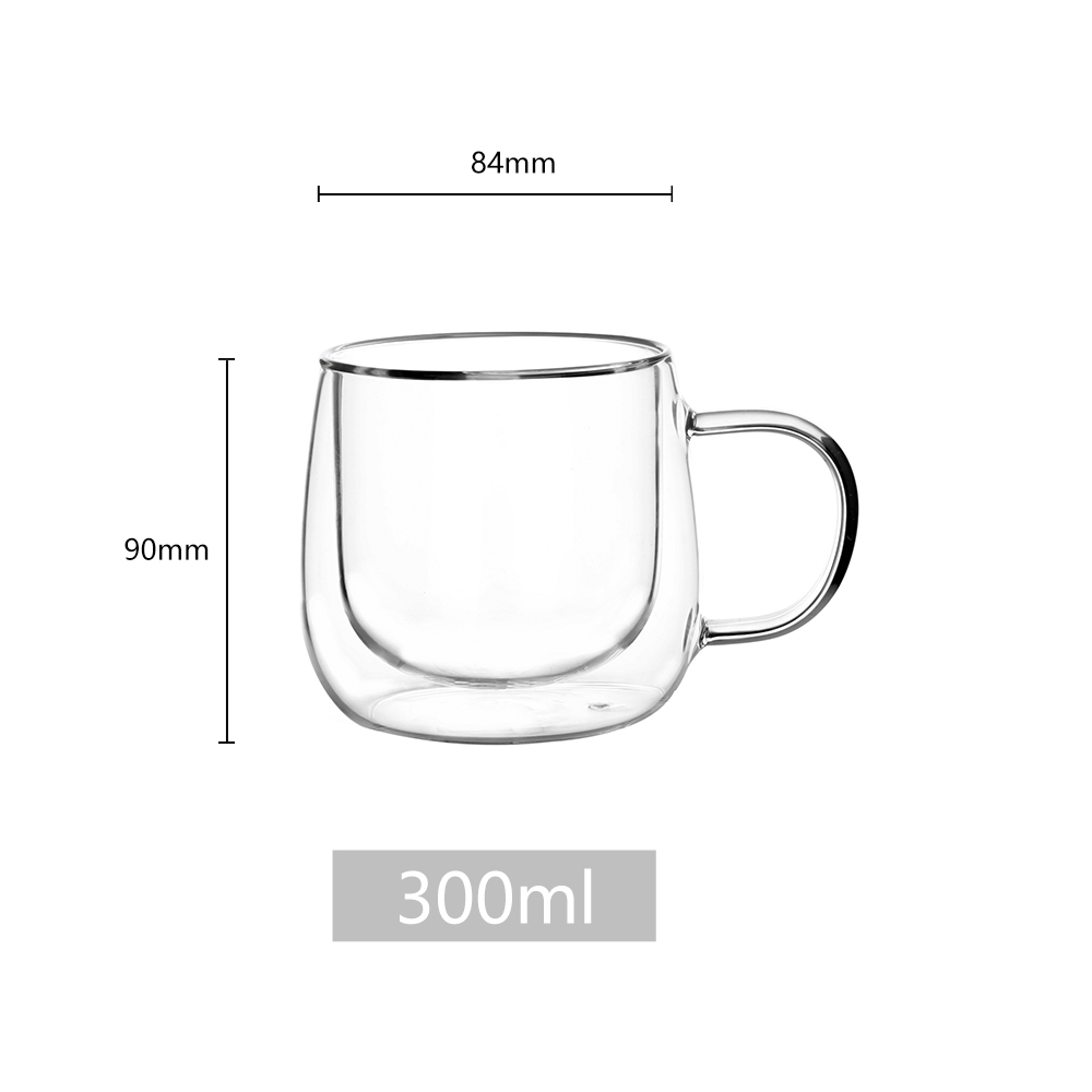 High borosilicate glass is non-toxic, BPA-free, and resistant to chemical corrosion. The double-wall design provides excellent insulation, keeping hot beverages hot and cold beverages cold for longer.Φ84x H90mm,300ml
