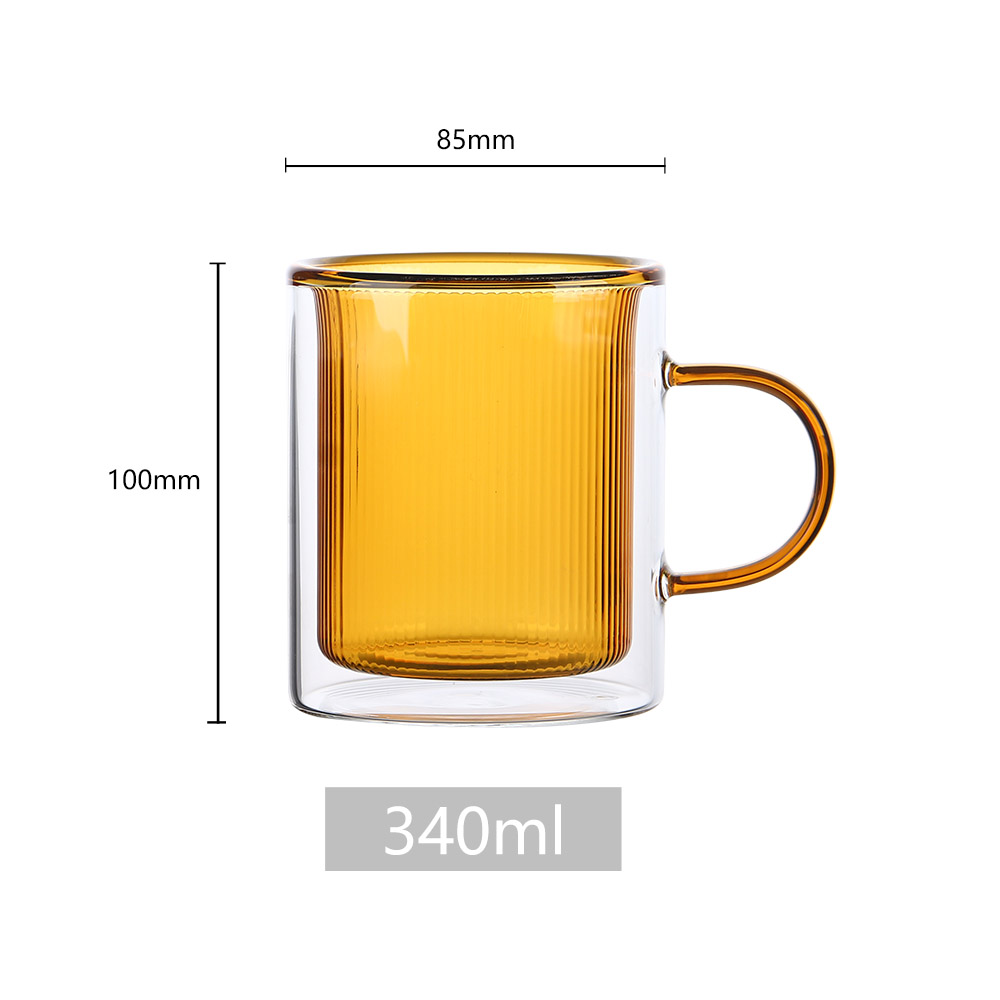 High borosilicate glass is non-toxic, BPA-free, and resistant to chemical corrosion. The double-wall design provides excellent insulation, keeping hot beverages hot and cold beverages cold for longer.Φ85x H100mm,340ml