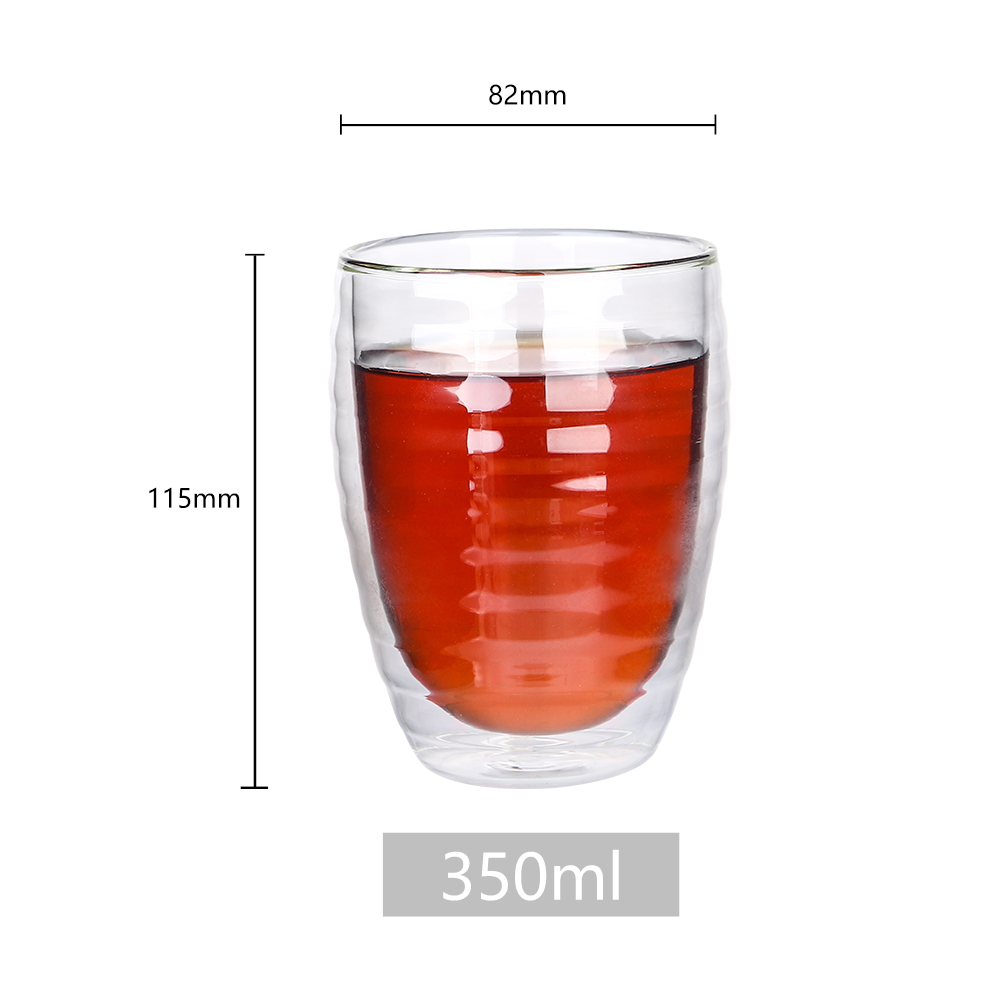 High borosilicate glass is non-toxic, BPA-free, and resistant to chemical corrosion. The double-wall design provides excellent insulation, keeping hot beverages hot and cold beverages cold for longer.Φ82x H115mm,350ml