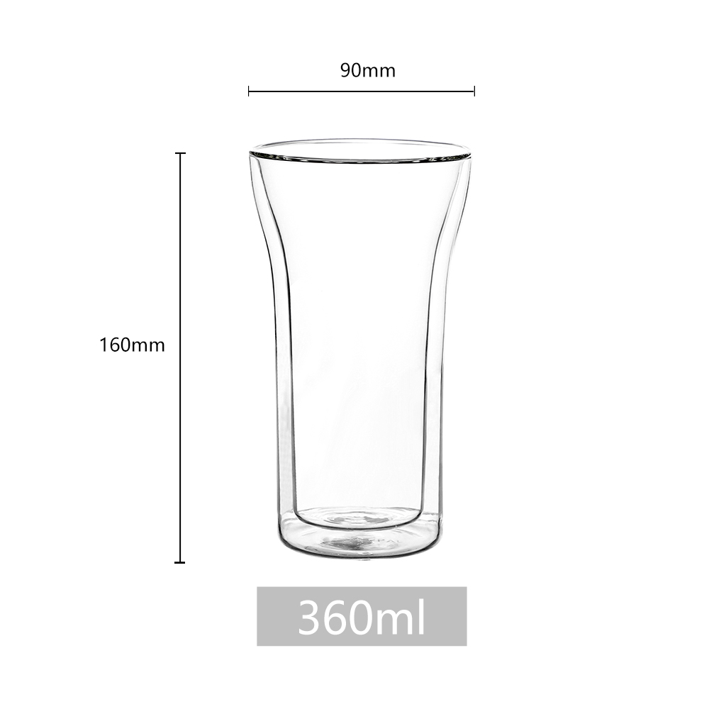 High borosilicate glass is non-toxic, BPA-free, and resistant to chemical corrosion. The double-wall design provides excellent insulation, keeping hot beverages hot and cold beverages cold for longer.Φ90x H160mm,360ml