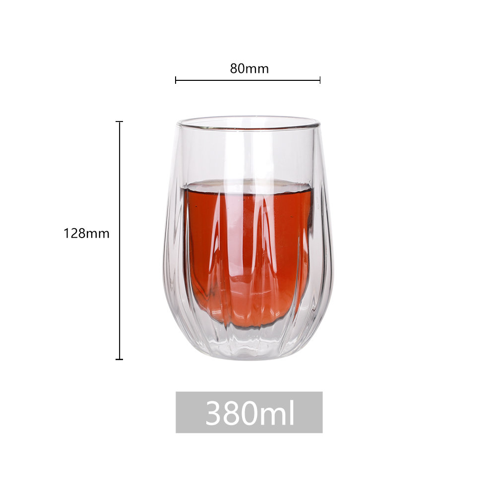 High borosilicate glass is non-toxic, BPA-free, and resistant to chemical corrosion. The double-wall design provides excellent insulation, keeping hot beverages hot and cold beverages cold for longer.Φ80x H128mm,380ml