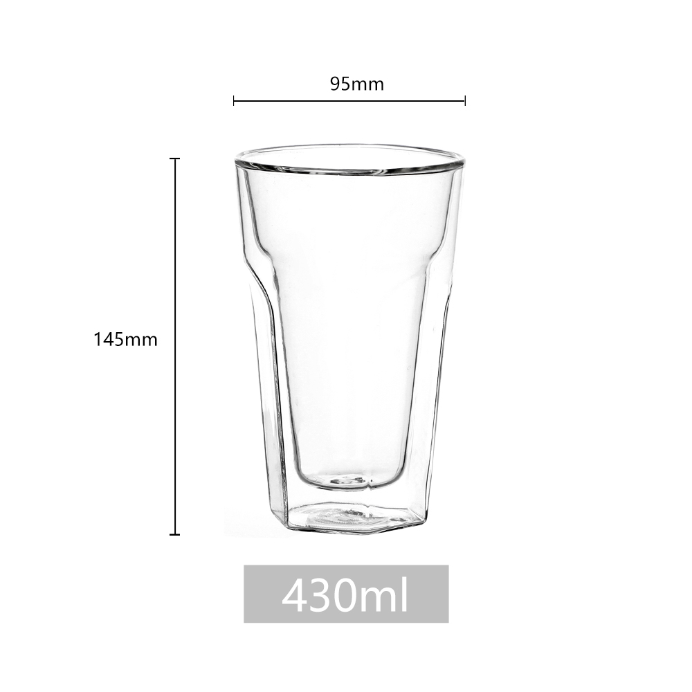 High borosilicate glass is non-toxic, BPA-free, and resistant to chemical corrosion. The double-wall design provides excellent insulation, keeping hot beverages hot and cold beverages cold for longer.Φ95x H145mm,430ml