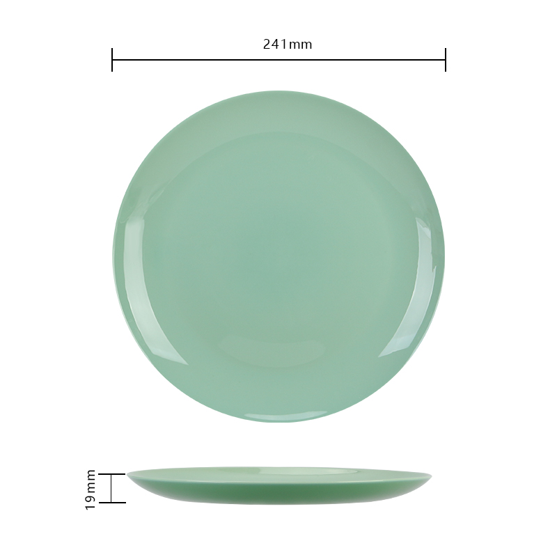 Inch:9.50 Diameter:241mm Width:241mm Depth:241mm Height:19mm Volume:0ml Material:Opal Use:Dinner Plate Microwave Safe:Yes Dishwasher:Yes