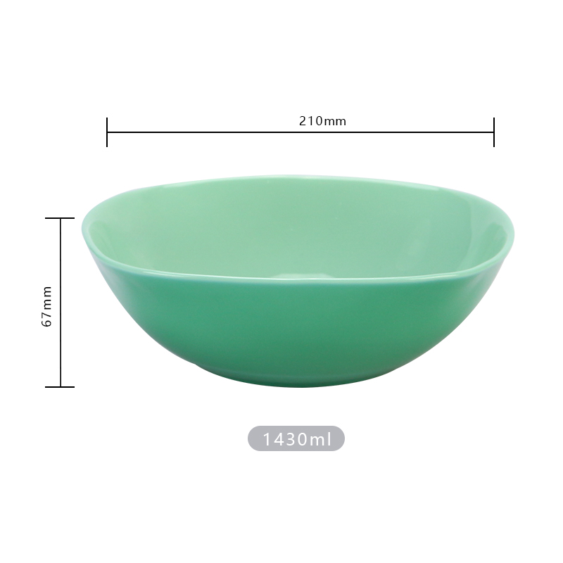 Inch:9.00 Diameter:229mm Width:210mm Depth:210mm Height:67mm Volume:1430ml Material:Opal Use:Salad Bowl Microwave Safe:Yes Dishwasher:Yes