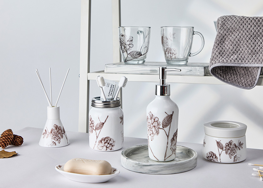 Made of SHULOPAL premium OPAL glass material, including soap dispensers, toothbrush holders, towel holder,  cotton swab jars, face mask jar, and more, ideal for modern bathrooms.