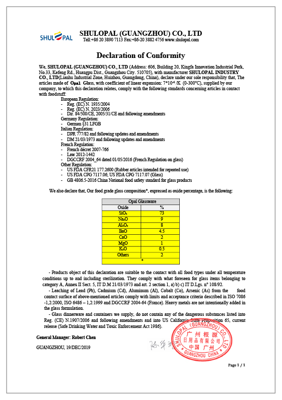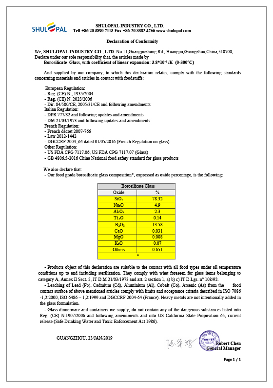 We are committed to meeting all legal obligations to ensure the safety and quality of our products. This includes adherence to food contact safety regulations by testing for hazardous substances such as VOCs, PAA, PAHs, lead, cadmium, heavy metals, and other harmful contaminants. SHULOPAL conducts rigorous laboratory testing to guarantee the absence of these substances, ensuring compliance with safety standards such as LFGB, FDA, and California Proposition 65 (CA65).